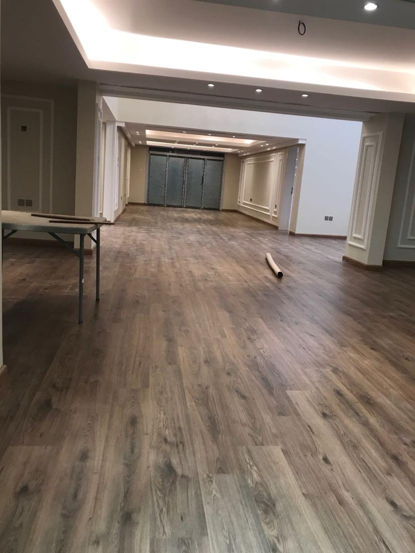 (Parquet, vinyl, ceramic, marble) tailored to the project's use and space.