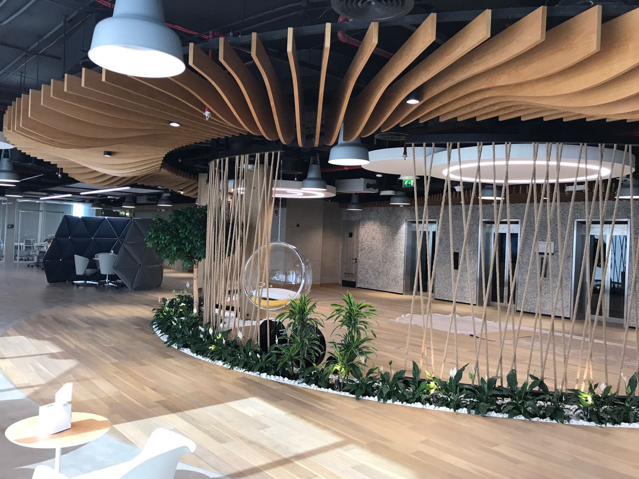 Featuring modern geometric shapes that align with the visual identity of the facility.